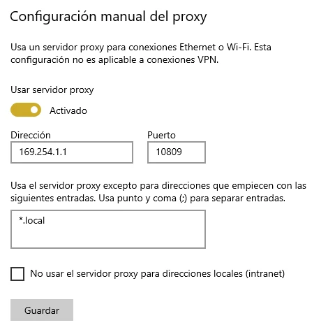 4. Configure su dispositivo Windows, busque la opción: Configuración de proxy